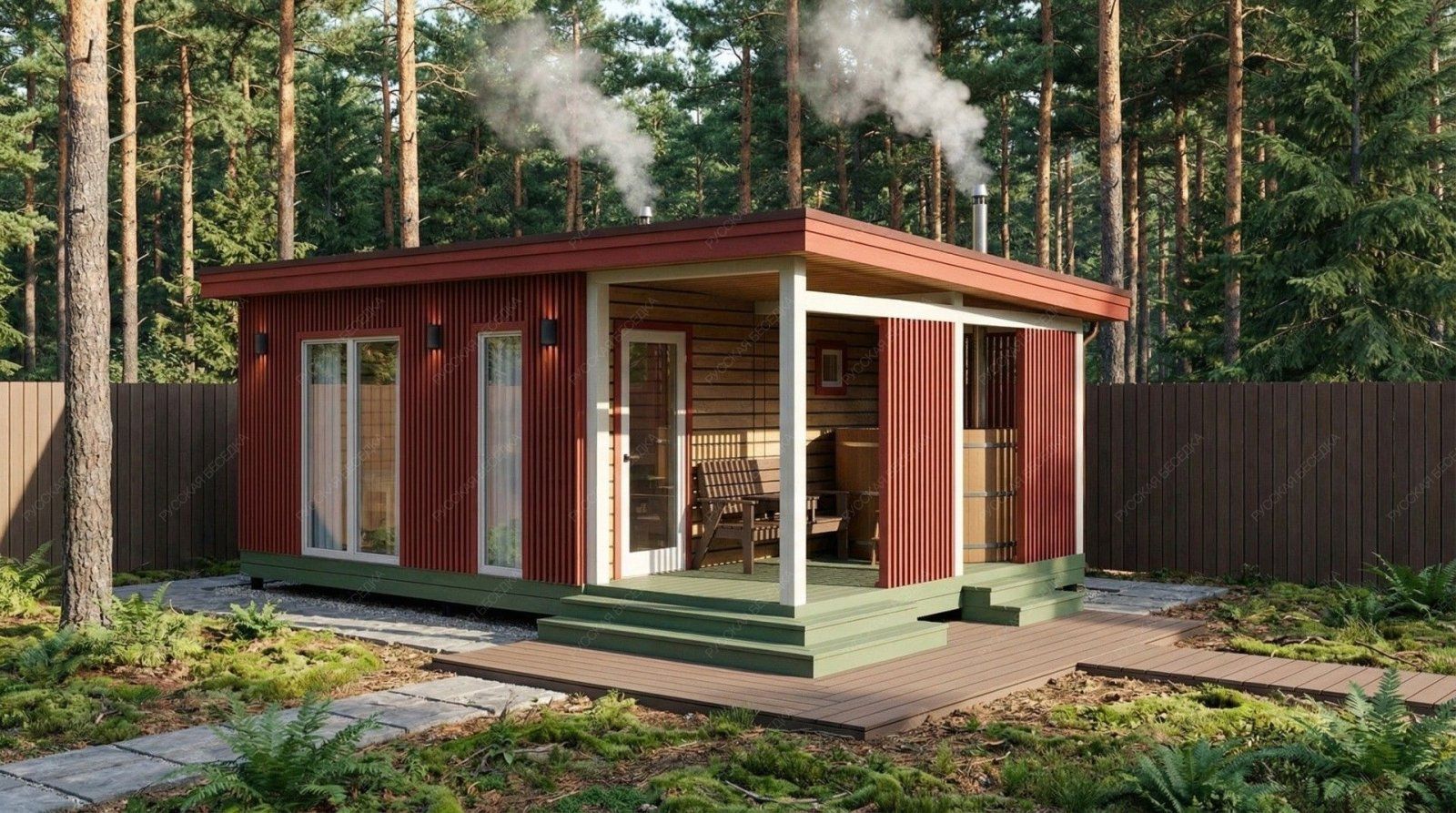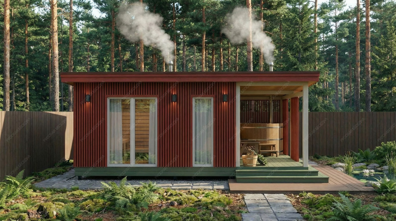Баня «Ортея» — это гармоничный симбиоз классической русской традиции и современного подхода к загородному отдыху. Конструкция с открытой террасой создает идеальный баланс между динамикой парных процедур и спокойным расслаблением на свежем воздухе. После целебного жара парной так приятно выйти на просторную террасу площадью 10,08 м², чтобы насладиться тишиной и окружением природы.  Планировка продумана для максимального удобства. Просторная парная площадью 5,94 м² с классическим деревянным окном-форточкой обеспечивает идеальный микроклимат и мягкий, контролируемый пар. Отдельная помывочная зона (3,18 м²) и уютная комната отдыха (9,35 м²) позволяют комфортно провести время всей компанией. Односкатная крыша и выверенные пропорции строения (4,5х4,85 м + терраса 2,15х4,85 м) придают проекту выразительный, современный вид.  Качество исполнения и натуральные материалы гарантируют долговечность, отличное теплосбережение и неповторимую атмосферу, где каждая деталь работает на ваше удовольствие и релаксацию. Это не просто постройка, а готовое решение для создания вашего личного центра wellness на собственном участке.