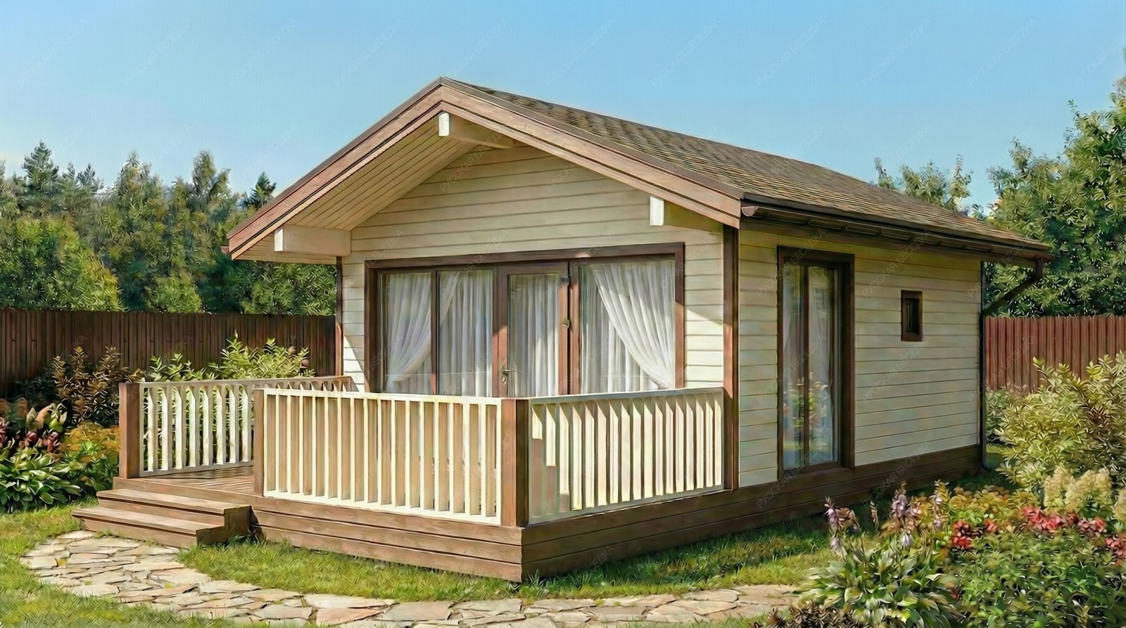Вся конструкция обрабатывается декоративным деревозащитным составом в 2 слоя - при необходимости дополнительно.