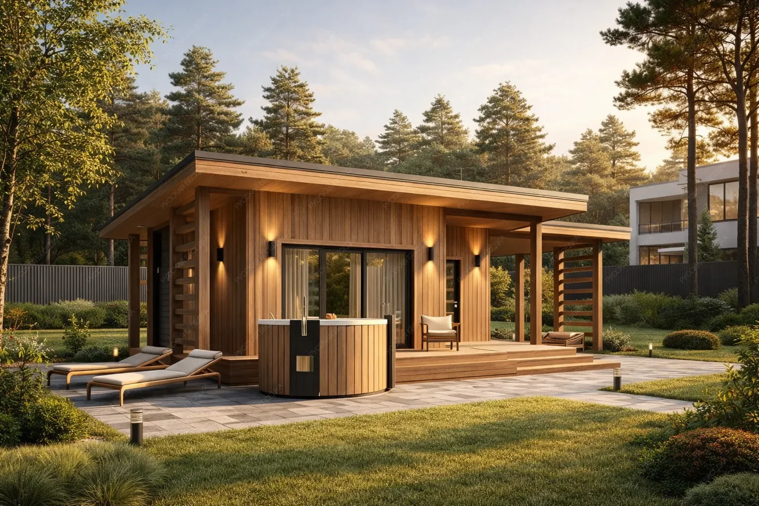 Каркасная баня «Гуль» с габаритами 4х7 метров и односкатной крышей представляет собой современный проект площадью 28 кв.м., где ключевым архитектурным элементом выступает панорамное остекление в зоне отдыха. Это решение визуально расширяет пространство, наполняет его светом и создает постоянную связь с природным ландшафтом, превращая обычное пребывание в эстетический опыт. Открытая терраса логически дополняет интерьер, формируя плавный переход к внешней среде и расширяя полезную площадь для релаксации. Внутренняя планировка организована с учетом эргономики: компактная парная, функциональная душевая и санузел гармонично сочетаются с просторной комнатой отдыха, ставшей смысловым центром благодаря остеклению. Каркасная технология обеспечивает быстрый монтаж и отличные теплоизоляционные характеристики. Односкатная крыша подчеркивает лаконичный и актуальный дизайн. Данная модель предназначена для ценителей современных архитектурных форм, ценности естественного света и желающих получить не просто баню, а стильное личное пространство для уединенного отдыха с эффектом единения с природой.