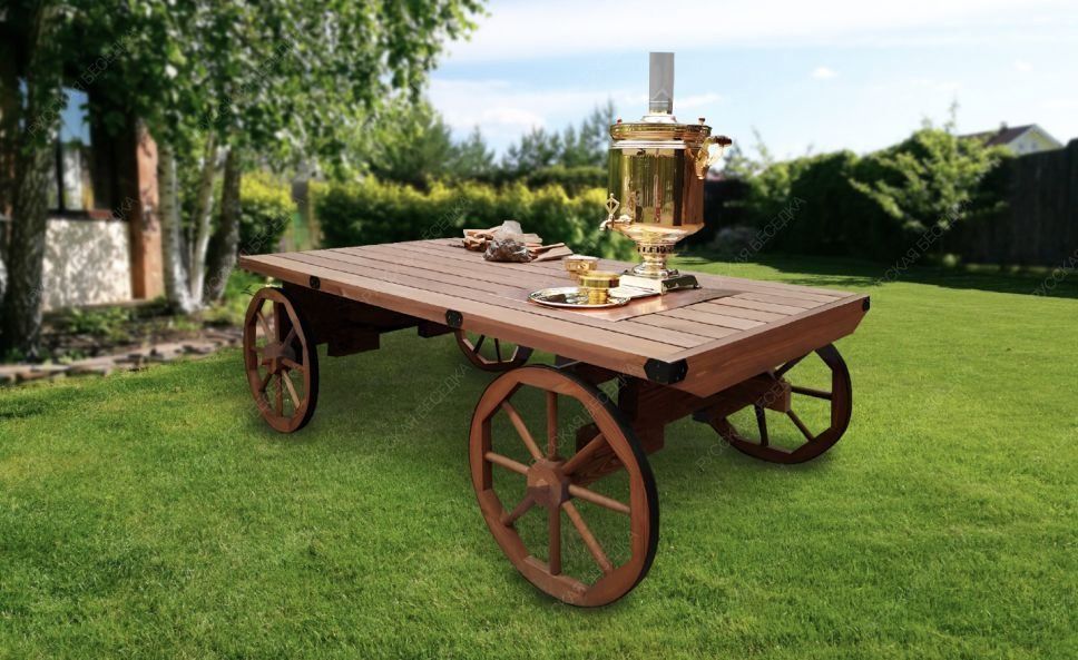 Деревянная телега-стол
