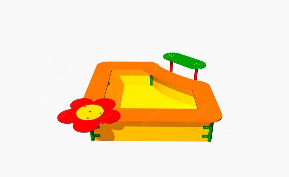 Детская песочница «Фиалка» изготовлена из влагостойкой фанеры. Один из ее углов украшен декоративной накладкой в форме цветка, а в противоположном углу устанавливается небольшой столик. Оба этих элемента создают детям дополнительный простор для воплощения их песочных фантазий. Игры с песком служат координации движений ребенка, способствуют развитию фантазии и объемному видению мира. В отличии от более простых детских песочниц, эта модель отличается интересным дизайнерским решением.