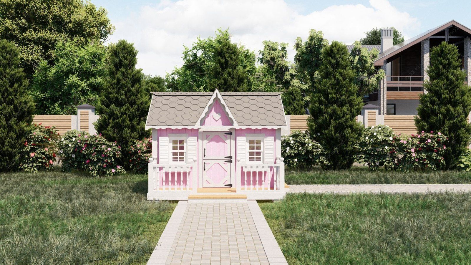 Детский домик Облачко с террасой