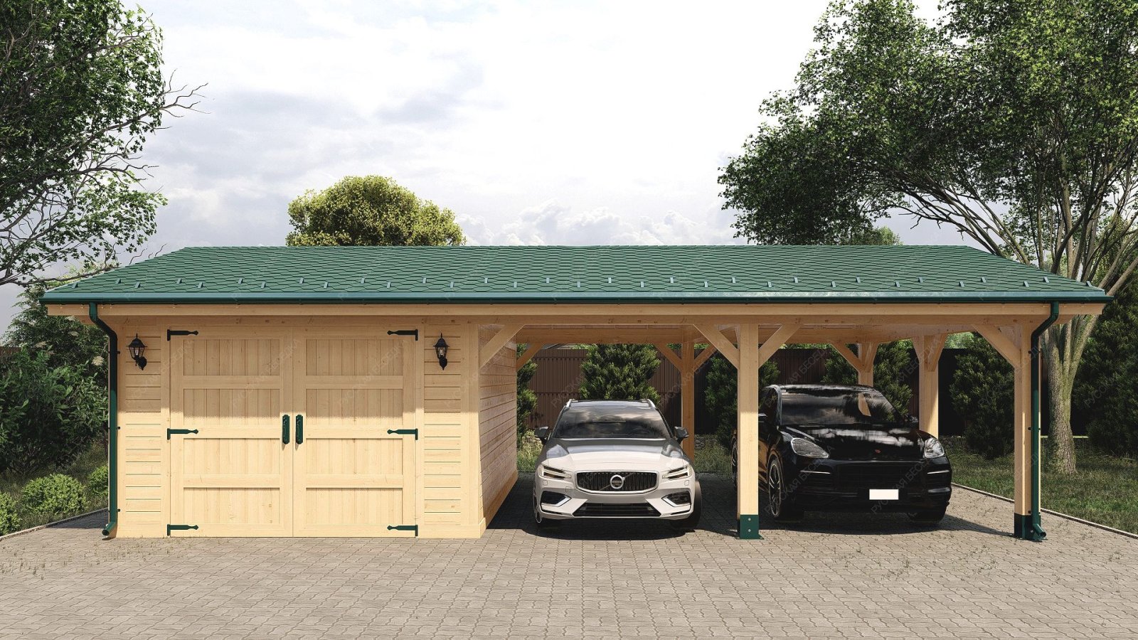 Деревянный гараж — это не только удобное и функциональное сооружение, но и отличная возможность дополнить архитектурный стиль вашего участка. Деревянные конструкции остаются вечной классикой, так как дерево — экологически чистый и натуральный материал. Одним из основных преимуществ деревянных гаражей является их доступная цена, что делает их более выгодным вариантом по сравнению с постройками из других материалов. При правильном строительстве деревянный гараж может служить десятилетиями, сохраняя все свои свойства и привлекательный внешний вид. Мы заботимся о качестве наших конструкций, обрабатывая древесину надёжными пропитками, которые защищают от гниения и плесени. Огнебиозащитные средства обеспечивают устойчивость к влаге, ультрафиолетовому излучению, перепадам температуры и другим атмосферным воздействиям. Кроме того, мы можем предложить утепление гаража, учитывая важность пароизоляции для сохранения тепла и защиты конструкции. Индивидуальное проектирование позволит вам точно вписать гараж в экстерьер вашего участка и оптимально спланировать внутреннее пространство для удобства использования. Создайте идеальное место для хранения вашего автомобиля и оборудования с нашим деревянным гаражом!