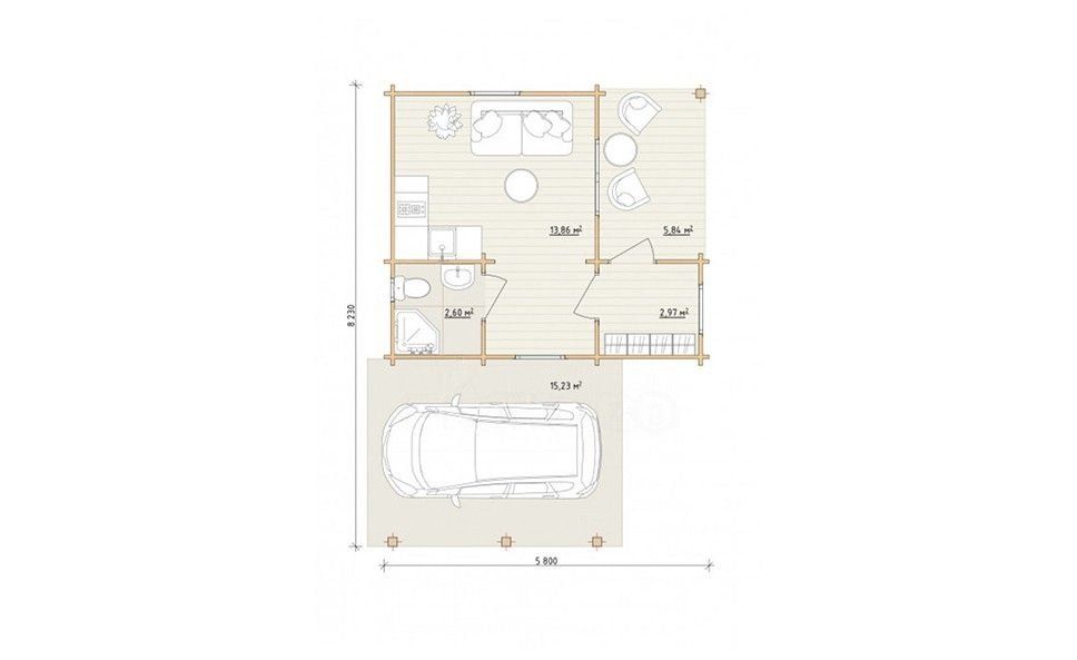 • Внешние размеры: 8,2x5,80x3,51 м