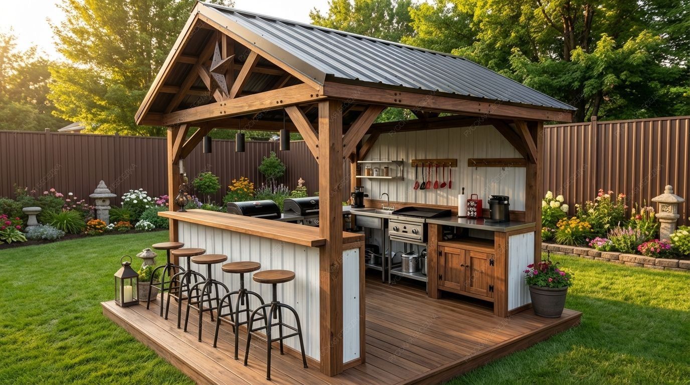 Летняя кухня станет не только функциональным и красивым дополнением к вашему участку, но и создаст атмосферу уюта для теплых вечеров в кругу семьи и друзей. Круглый год вы сможете радовать близких блюдами, приготовленными на открытом огне, а в сезон - заниматься заготовками овощей. Наши летние кухни изготовлены из высококачественных пород древесины, что обеспечивает их долговечность и минимальные требования к уходу. Мы используем специальные пропитки и красящие составы, которые защищают конструкцию от старения, гниения и грибковых поражений. А индивидуальный подход к каждому клиенту позволяет нам вносить изменения в существующие модели кухонь и разрабатывать конструкции, полностью соответствующие вашим уникальным пожеланиям и требованиям.
