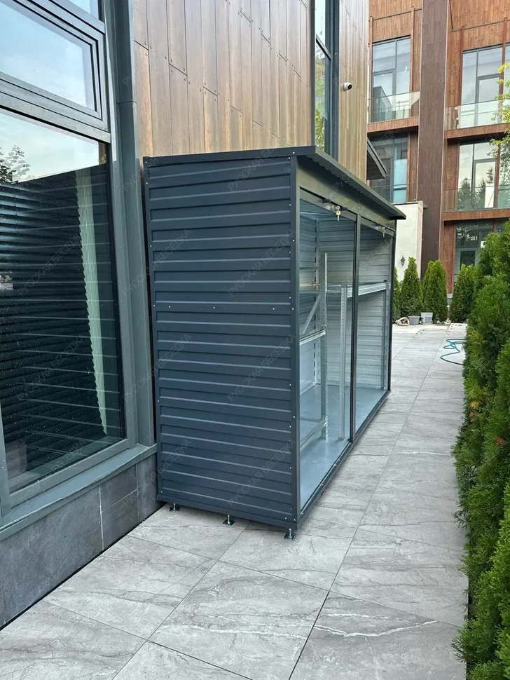 Металлический шкаф для уличного хранения — это надежное решение для аккуратного хранения инвентаря, шин, инструментов и других сезонных вещей под навесом. Идеален для дачных участков, частных домов и таунхаусов. Изготавливается под ваши размеры, под цвет фасада или забора (по палитре RAL). Легко вписывается в архитектуру участка. Конструкция шкафа выполнена из оцинкованного металлопрофиля, устойчивого к влаге, перепадам температур и коррозии. Цвета: серебристый; коричневый и антрацит (уточняйте цену у менеджера).
