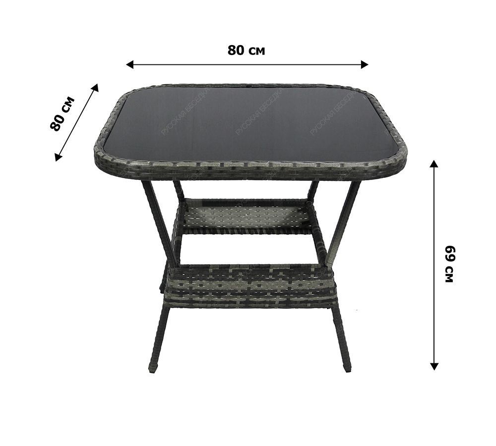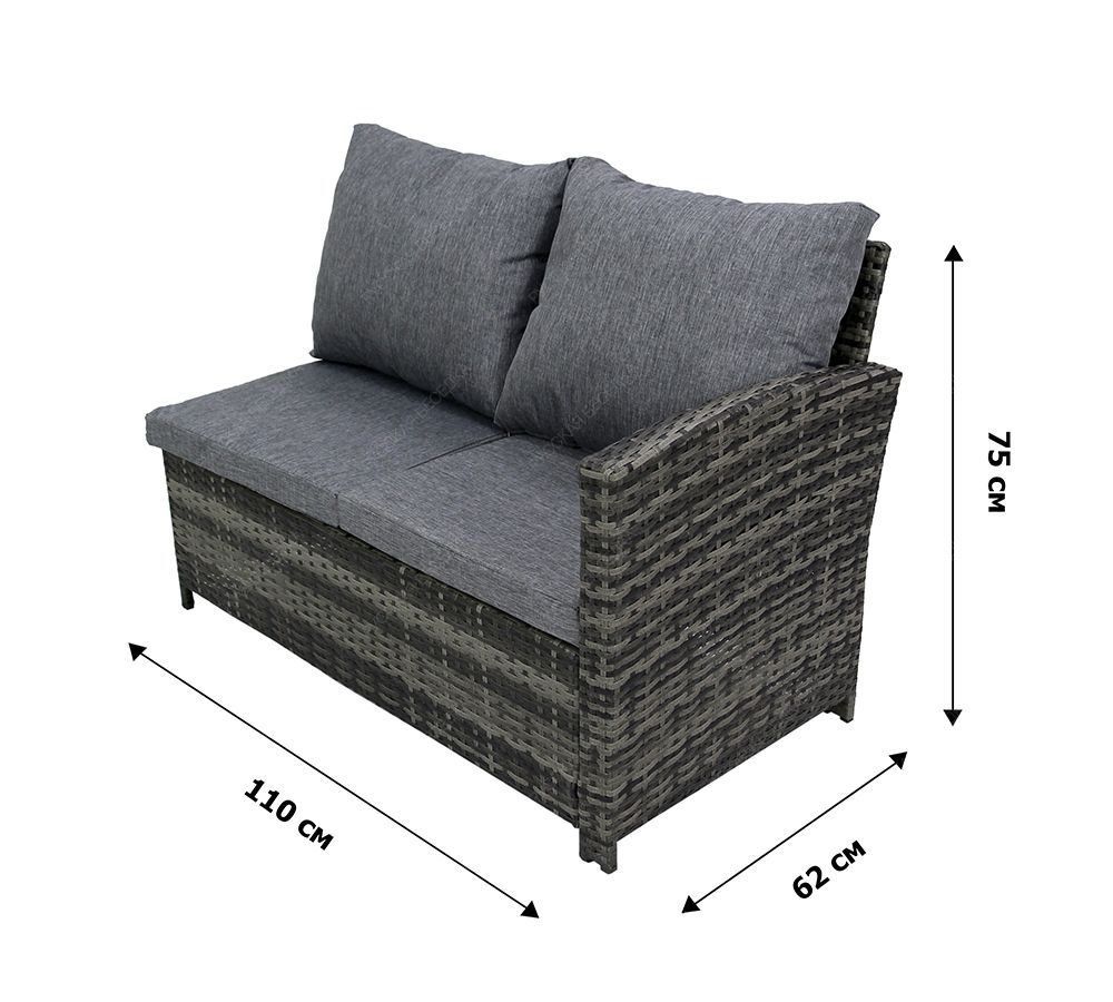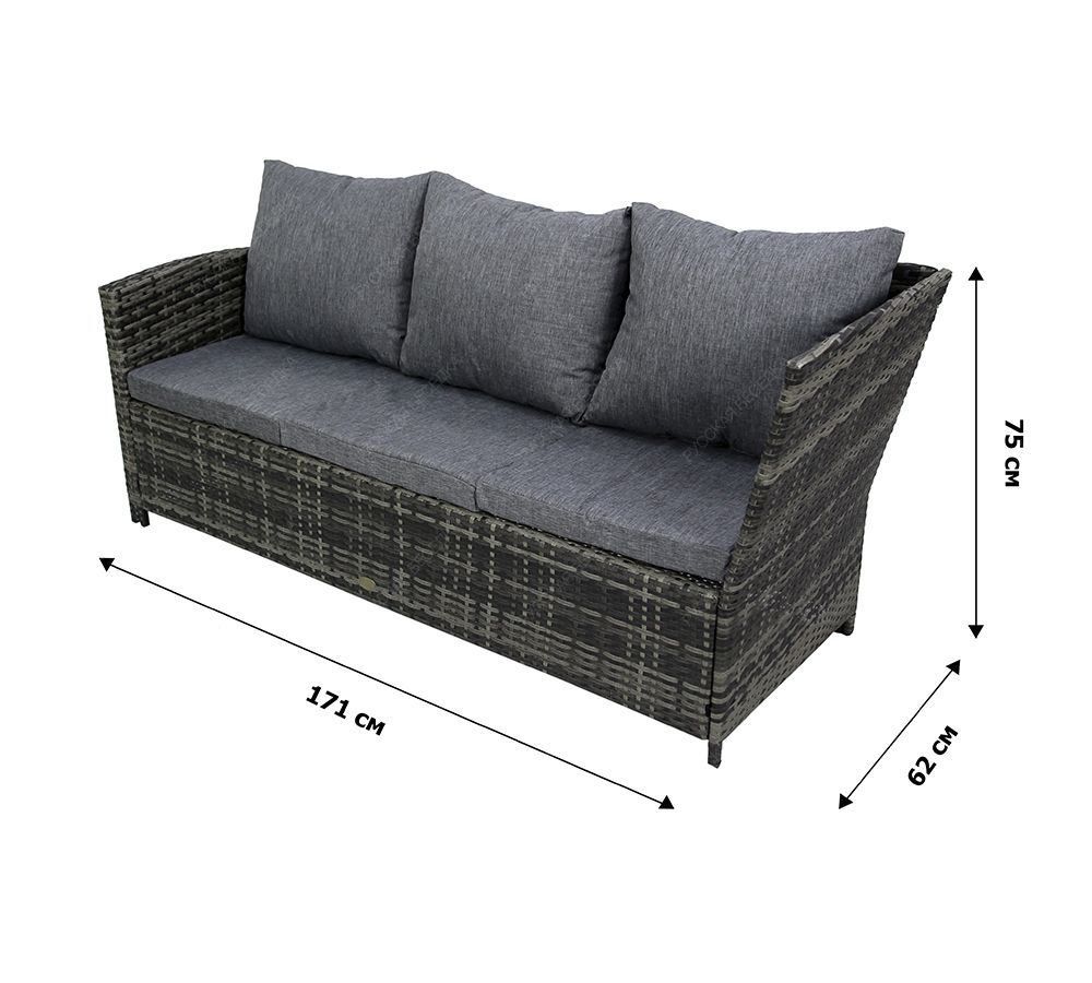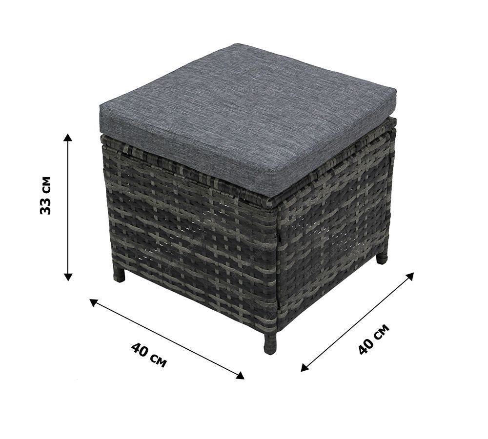 пуф: 40х40х33, стол: 80х80х69, диван 2-х местн.: 62х110х75, диван 3-х местн.: 62х171х75