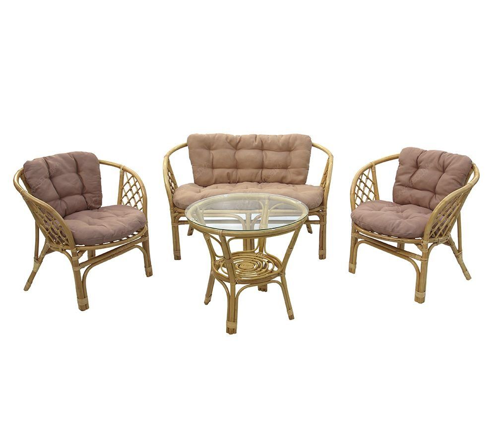 Дополнительно Класс ротанга А. Глубина сиденья 52см, высота от пола до сиденья 46 см. Подушки упакованы в полиэтиленовый пакет по 2 штуки (спинка+сиденье). Чехлы не съемные, материал влагоотталкивающий, сухая чистка
