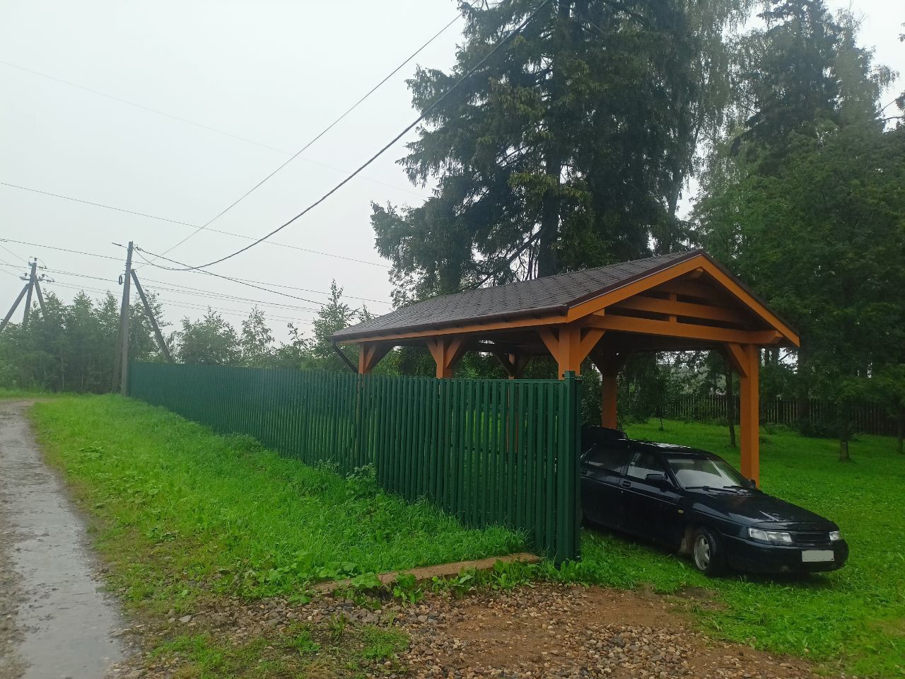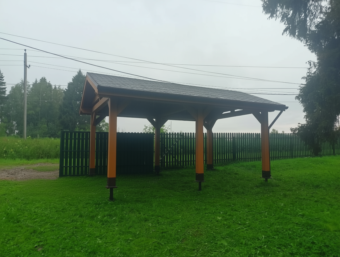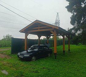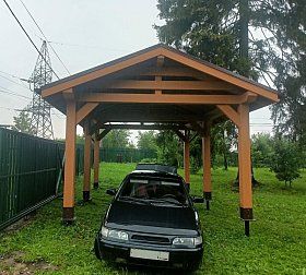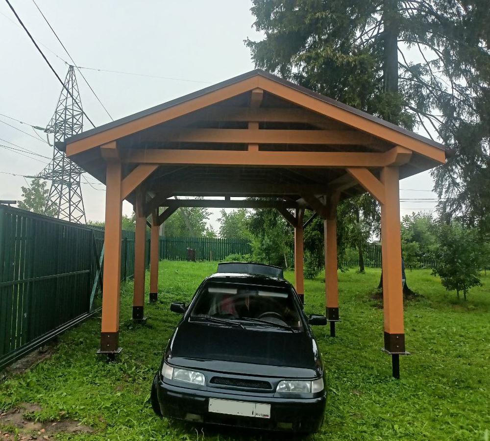Навес из дерева послужит отличным парковочным местом для одного или нескольких автомобилей.