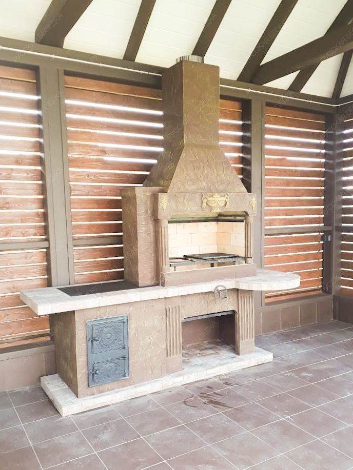 Барбекю-комплекс сделан из армированного огнеупорного бетона с добавлением керамзита.