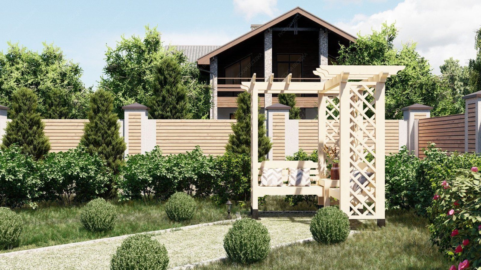 Перголы из дерева сочетают в себе природную красоту и современные дизайнерские решения, создают идеальное место для отдыха и различных видов досуга на открытом воздухе. Перголы могут стоять отдельно или быть частью композиции с другими элементами сада.