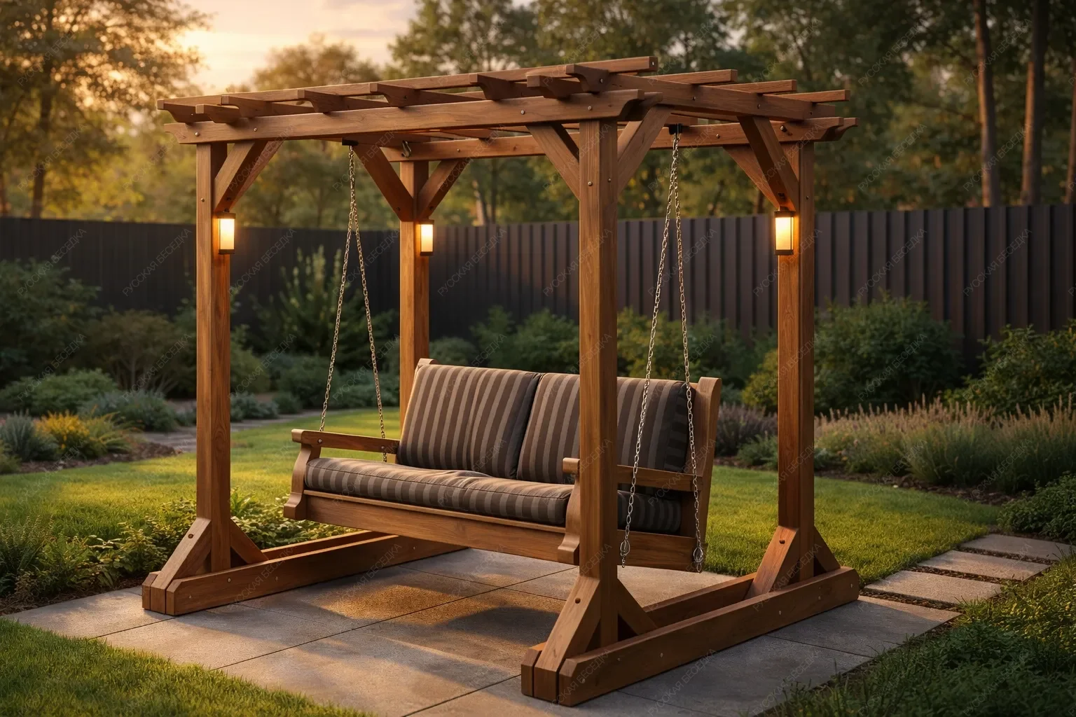 Качели — это незаменимый элемент для создания уютной зоны отдыха на даче. Они позволяют наслаждаться свежим воздухом и красотой природы, создавая атмосферу уюта и релаксации Наши качели отличаются надежностью и комфортом. Они выполнены из качественных материалов, что гарантирует их долговечность и устойчивость к погодным условиям. Эти качели идеально вписываются в ландшафт вашего участка, добавляя ему стильный и современный акцент. Они станут любимым местом для всей семьи, где можно провести время в общении и отдыхе. Создайте на своей даче уголок спокойствия и уюта с нашими садовыми качелями, которые подарят вам множество приятных моментов на свежем воздухе!