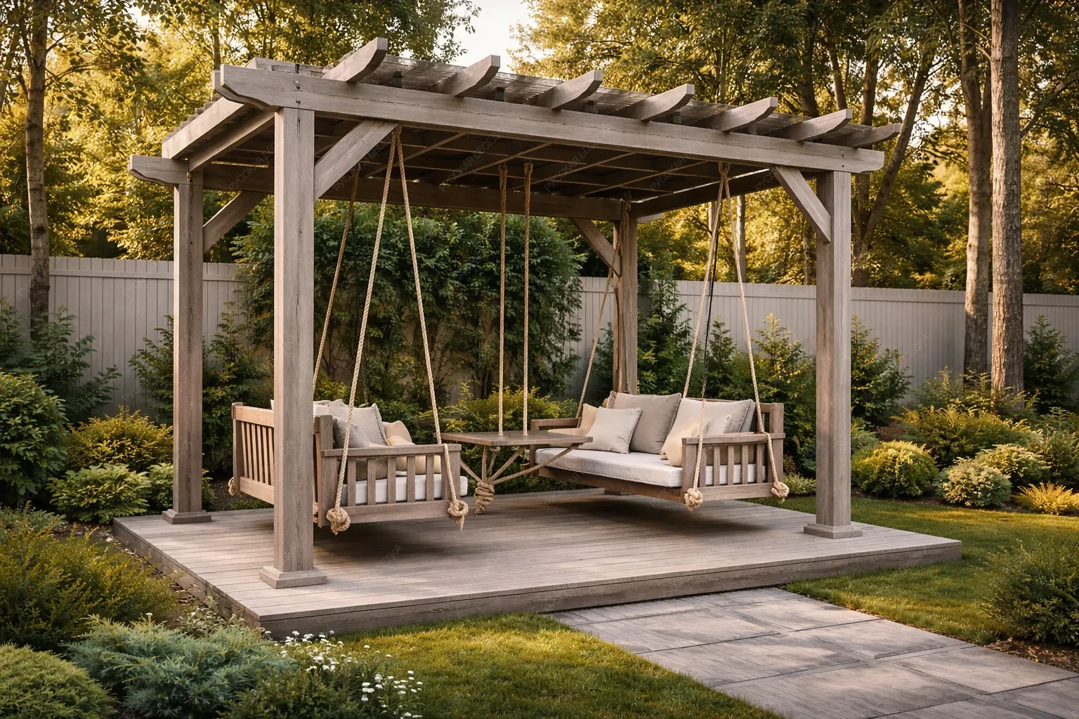 Качели — это незаменимый элемент для создания уютной зоны отдыха на даче. Они позволяют наслаждаться свежим воздухом и красотой природы, создавая атмосферу уюта и релаксации Наши качели отличаются надежностью и комфортом. Они выполнены из качественных материалов, что гарантирует их долговечность и устойчивость к погодным условиям. Эти качели идеально вписываются в ландшафт вашего участка, добавляя ему стильный и современный акцент. Они станут любимым местом для всей семьи, где можно провести время в общении и отдыхе. Создайте на своей даче уголок спокойствия и уюта с нашими садовыми качелями, которые подарят вам множество приятных моментов на свежем воздухе!