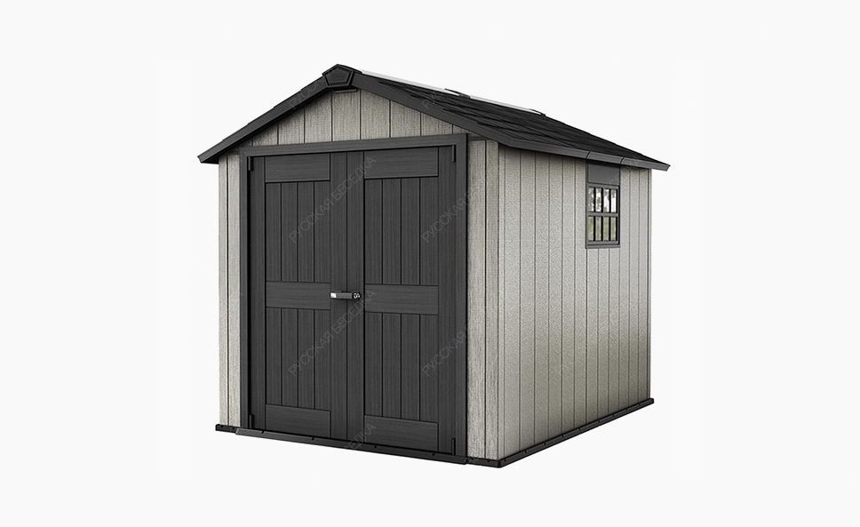 Практичный бокс OAKLAND 757 изготовлен из уникальной композиции смол, составляющих в результате высококачественный материал, устойчивый к воздействию неблагоприятных внешних факторов.  Бокс вместит в себя не только садовые инструменты и аксессуары, но также и газонокосилку и лестницу. Его основными преимуществами являются стабильная, усиленная металлом конструкция, солидная крыша и широкие, двустворчатые двери. Преимуществом также есть то, что бокс можно покрасить в любой цвет в соответствии с индивидуальным пожеланием