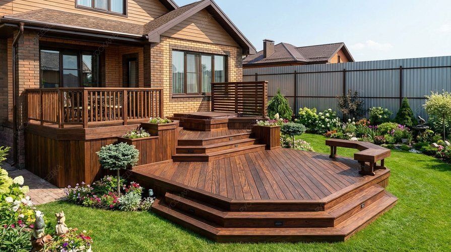 Террасы — это идеальное решение для создания уютного пространства на свежем воздухе, где вы сможете наслаждаться природой и проводить время с близкими. Эти деревянные конструкции не только расширяют жилую площадь вашего дома, но и становятся прекрасным местом для отдыха и развлечений. Террасы обеспечивают комфортное пространство для обустройства зон для приема пищи, отдыха или просто наслаждения солнечными днями. Они могут быть оформлены в различных стилях и размерах, что позволяет легко интегрировать их в общий ландшафт вашего участка. Благодаря использованию качественного дерева, наши террасы отличаются прочностью и долговечностью. Мы применяем только отборные породы древесины, которые проходят камерную сушку, что гарантирует защиту от гниения и вредителей. Специальные пропитки обеспечивают защиту от атмосферных воздействий, а огнебиозащита делает террасы устойчивыми к влаге и перепадам температур. Наши специалисты помогут вам выбрать идеальный дизайн и размер террасы, чтобы создать комфортное и стильное пространство для отдыха. Превратите свой участок в уютное место, где приятно проводить время на свежем воздухе с нашими надежными деревянными террасами!